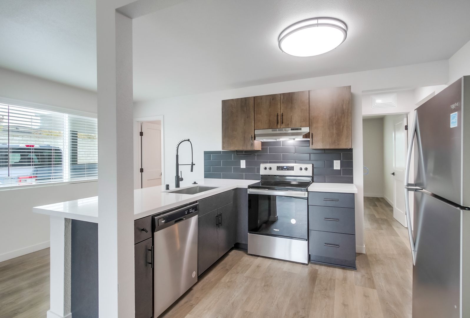 - Wood-style flooring