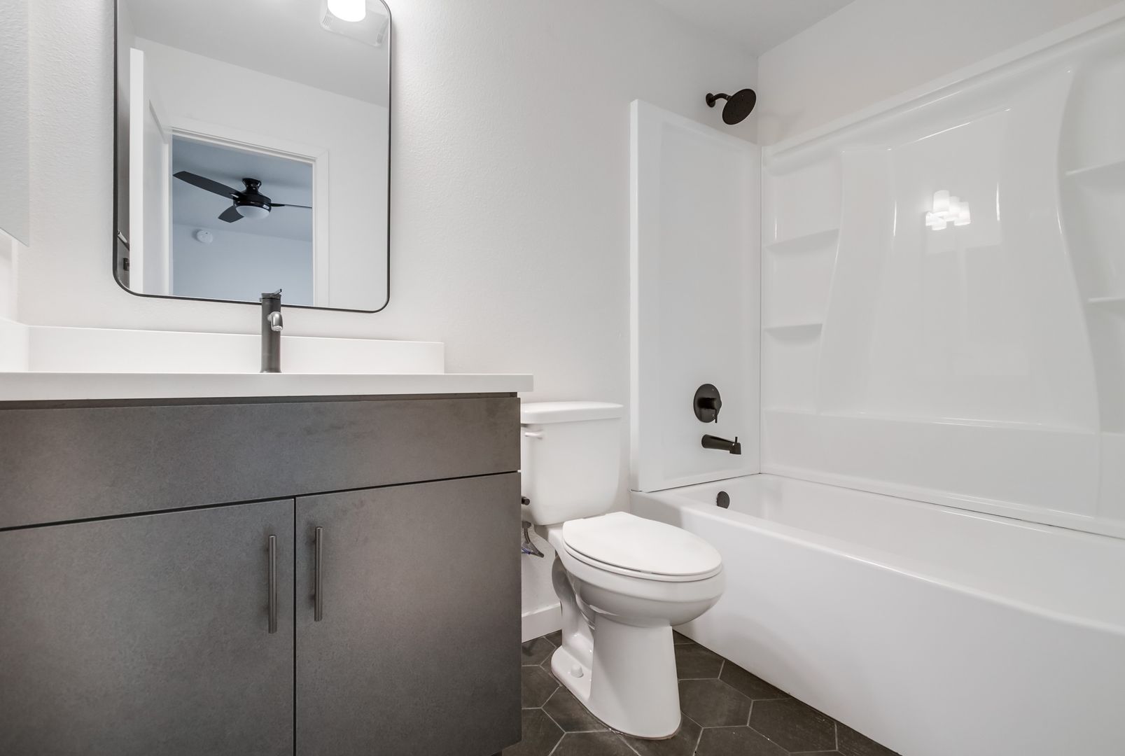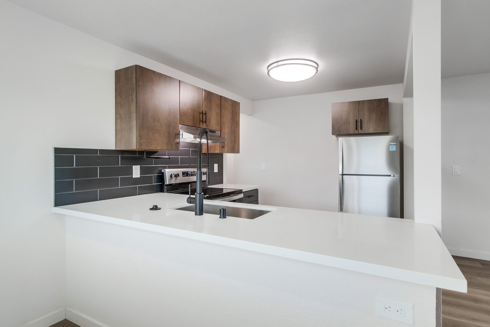 - Custom shaker-style cabinets